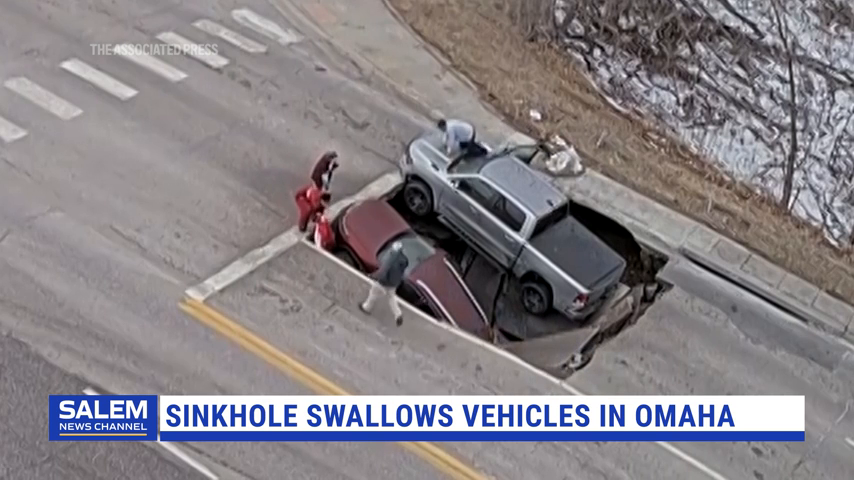 Sinkhole Opens At Omaha Intersection, Swallows SUV And Pickup Truck