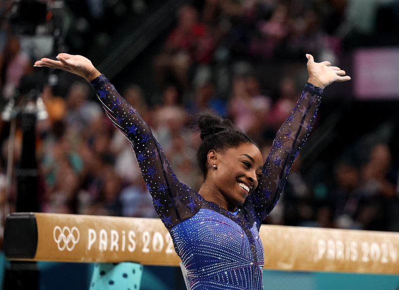 PARIS (Reuters) – American Simone Biles won the women’s all-around gymnastics gold medal at the Paris Olympics on Thursday.