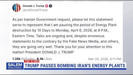 Trump Pauses Strikes On Iran's Energy Plants Until April 6