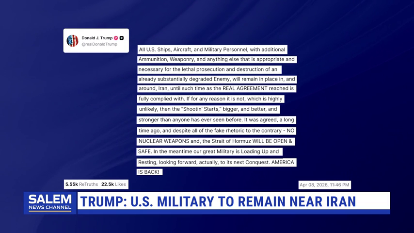 Trump: U.S. Military To Remain Near Iran Until “Real Agreement” Is Met
